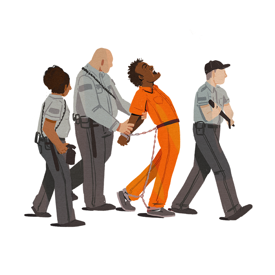 Of course, this requires me to be handcuffed. The yard here is extremely different from the one on the main line. There are no people, no grass, no views of the sky above. Just a cold concrete box where your only connection to fresh air is through a metal-screen covered 3-by-5-foot opening in the side of the wall. I refocus on what’s most important in this room: the phone. I fumble as I dial my mom’s number. It rings and rings. Finally, I hear her voice.