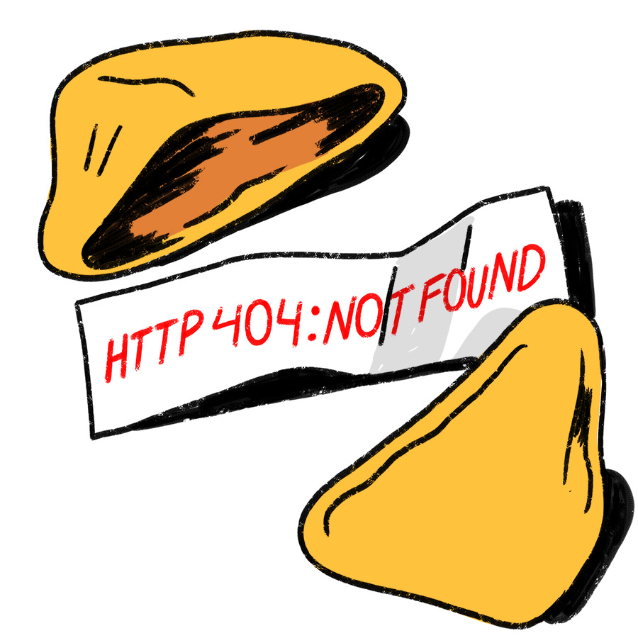 I type up the fortunes, using the same rose-colored font and style of type used in Chinese fortune cookies, and print the fortunes, front and back, on my color printer. I cut them into little strips of paper, and they look perfect. For example, one says, “HTTP 404: Not Found.” And on the back, it says, “Schmear: A spread or a bribe.” Another says, “Talk is cheap. Often cheaper on nights and weekends.” On the back: “Chutzpa: Nerve.”