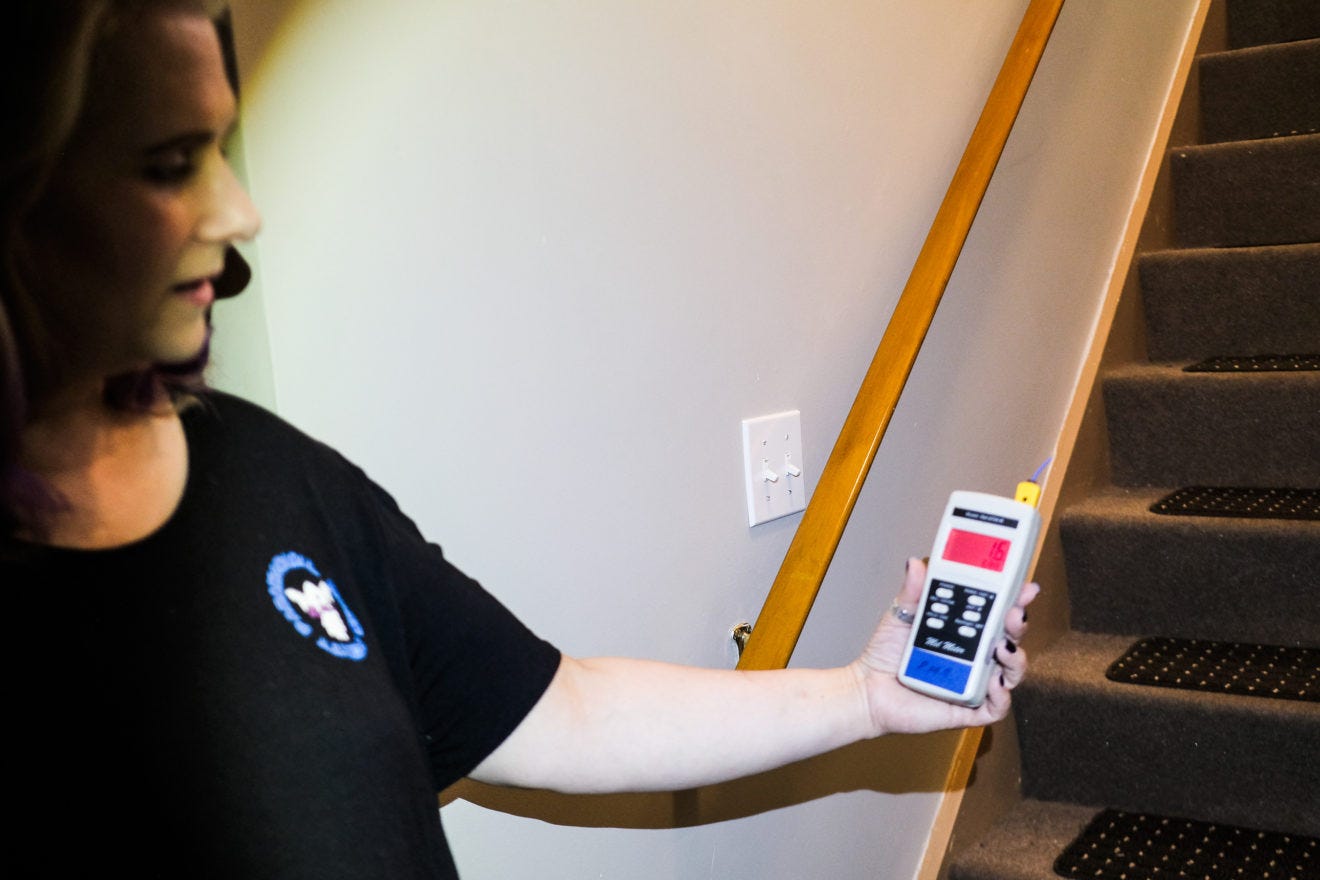 When they get a new case, PMS’s process is methodical. First, Mason does a historical deep dive on the home and surrounding area. “It takes a lot of digging. I mean, I can go through 500 pieces of paper at the library and not find anything,” she says. She looks for anything that could explain the paranormal happenings, deaths in the house, accidents nearby, or unusual historical occurrences in the town. She has uncovered mining accidents in Cherry Grove, Illinois, and stories about the Confederacy at the Maywood Home for Soldiers’ Widows and Orphans, incidents she says paint a more vivid picture of what the women will be walking in on when the time comes. “She’ll go way back to the beginning of Earth if she has to,” says Ban.
