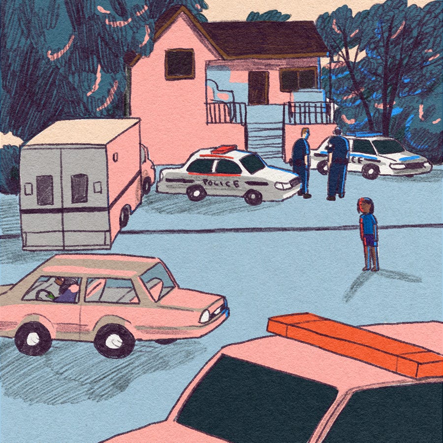 My sister drove by with her friend Colleen, and I yelled for her to stop, but she didn’t. She couldn’t hear me, distracted by all the commotion, wondering why there were so many police cars. She just drove away, farther and farther from me.