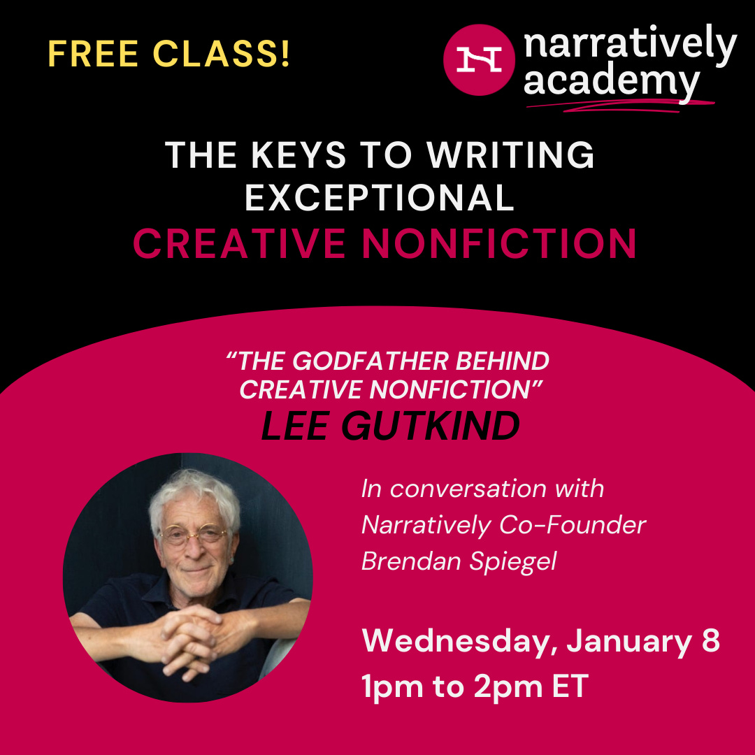 In this free 60-minute seminar, Lee Gutkind, in conversation with Narratively Co-Founder Brendan Spiegel, will talk through what he’s learned over 30 years of editing and publishing Creative Nonfiction.